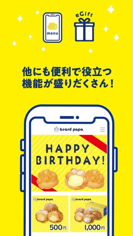 ビアードパパモバイルアプリは、お買い物でポイントがたまる「ポイントカード」や、アプリ限定のお得な「クーポン」を配信しています。