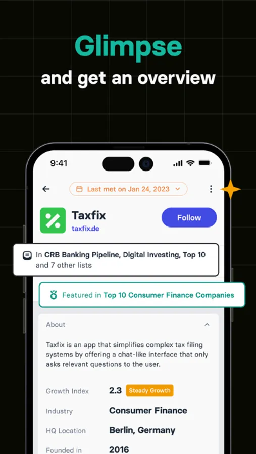 Before meeting a company, access a quick-to-digest data sheet highlighting key changes and updates since your last interaction.