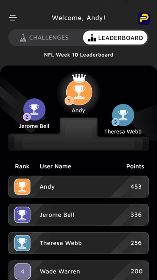 Points accumulated from completing challenges are displayed on a weekly leaderboard. The more challenges you complete the faster you climb to the top!