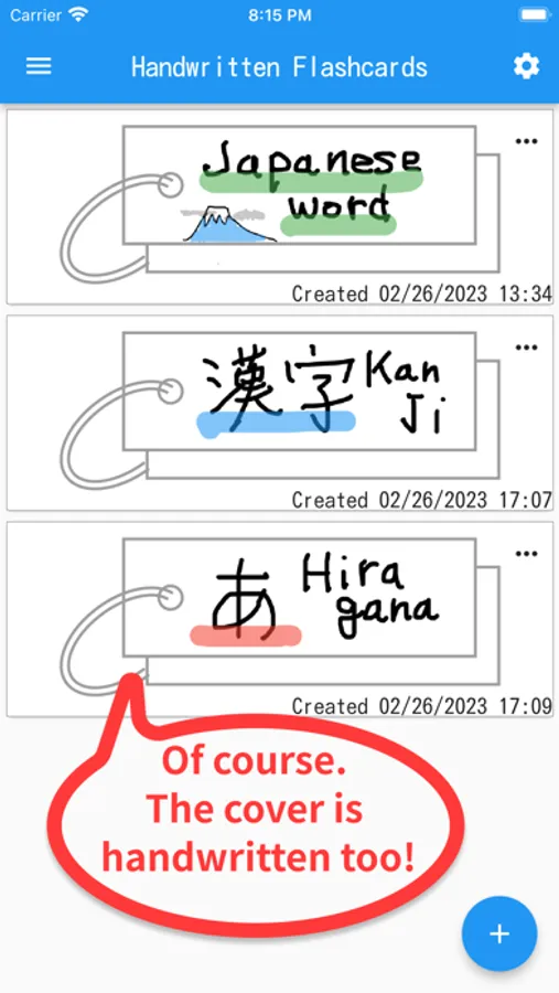 Word cards are created by handwritten notes. Write in the 'Question' and 'Answer' areas respectively.