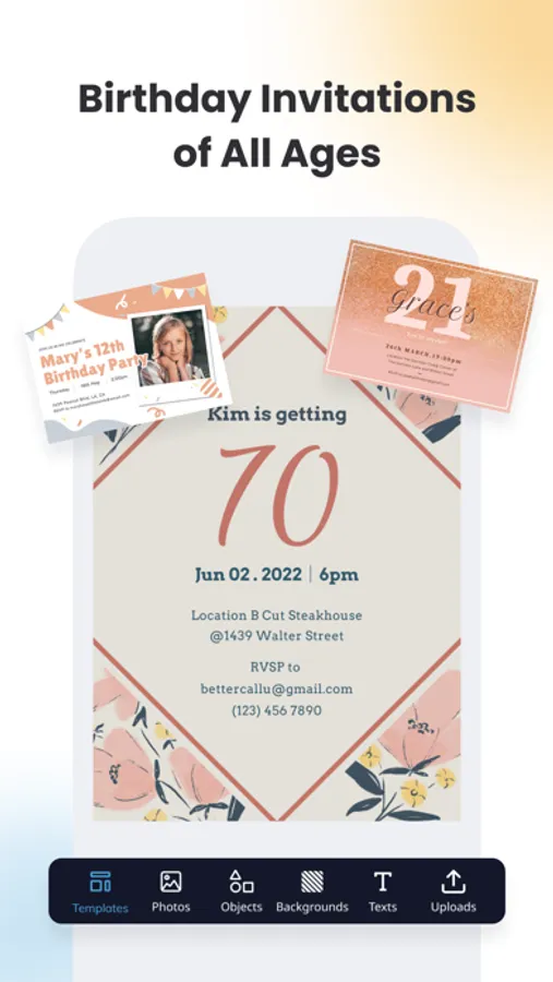 We offer Invitation card templates in different styles, ranging from elegant to cute and colorful. You can choose from our collection and create an invitation that perfectly fits the theme and tone of your event.