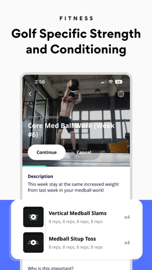 Supplement your golfing practice with optional fitness to help you unlock distance and accuracy. Track your progress in 6-8 week strength and conditioning cycles. Look good, feel good, play good.