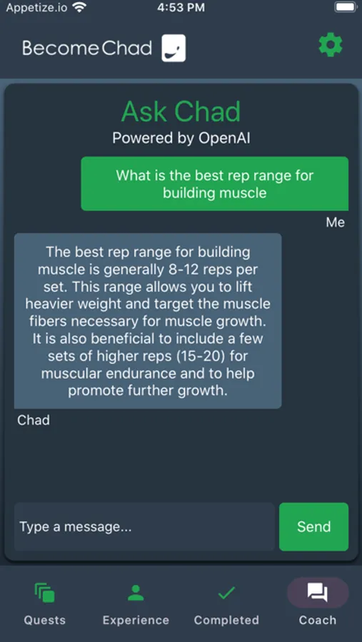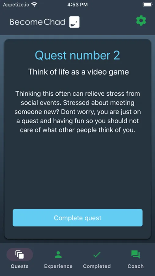 BecomeChad makes self improvement fun and engaging. Approach life as a series of quests from different categories. Track your skills, see correct exercise forms and level up in life. You also get an AI coach that can answer any question and help you with your self improvement journey.