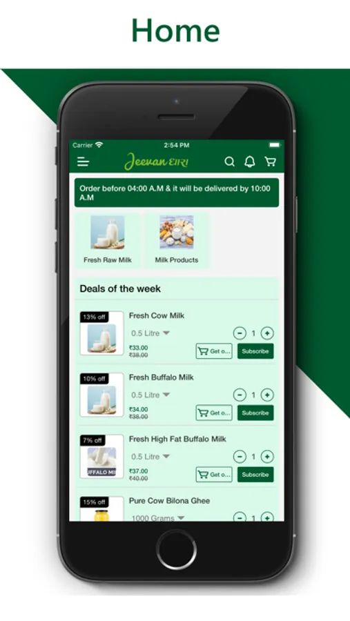 Jeevandhara mobile application for Milk is a user friendly application, which allows one to explore the products, manage orders, add subscriptions, place one time orders, make online payments for contact less deliveries. Place your order once according to required schedule, then sit back and relax we will deliver at your doorstep without any hassle. You can change your requirements at anytime.