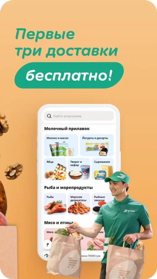 3 первые доставки - бесплатно, далее 15 000 сум.