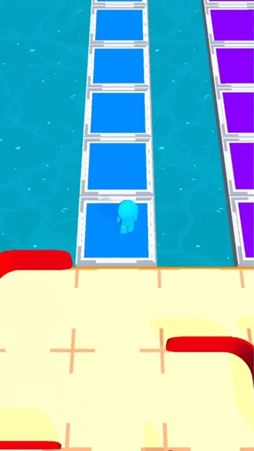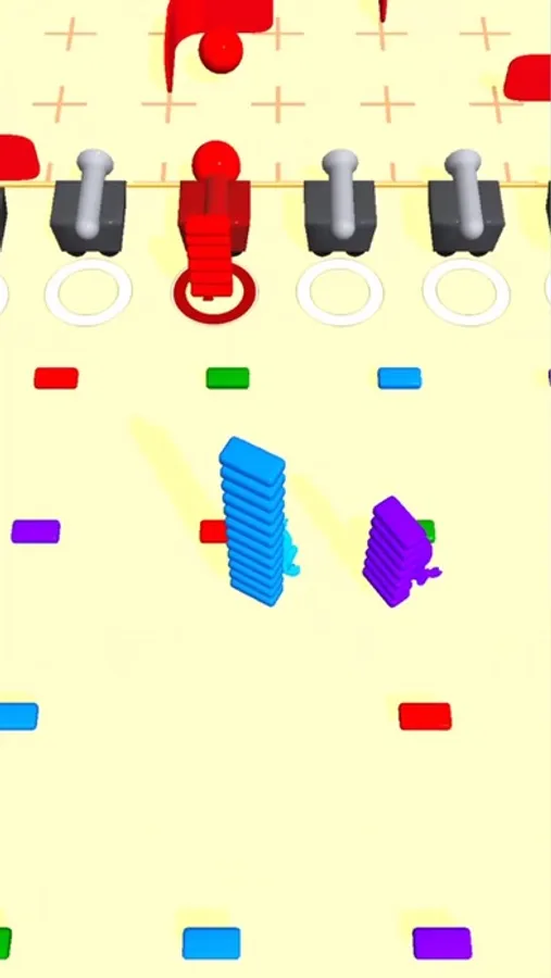 Collect balls of your own color from the ground and use them to collapse the bridge pieces using the L-shaped blocks. Be the first to reach the finish line!