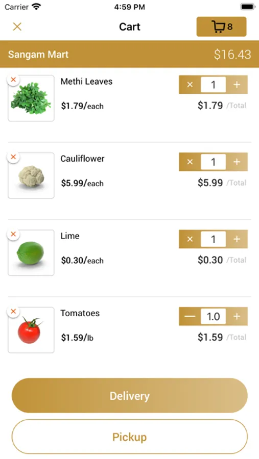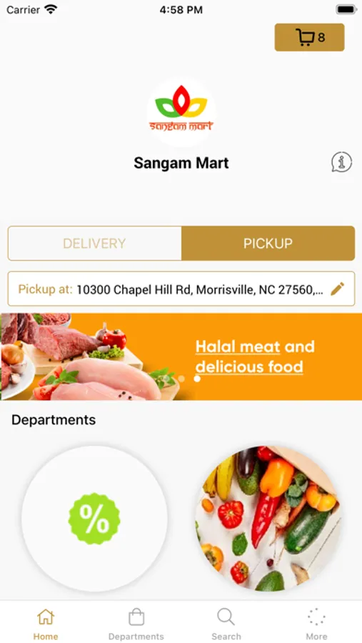 You can shop for groceries, halal meat , fresh produce and fresh food and have it delivered or picked up from store.