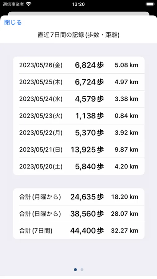 iPhoneでは直近7日間の歩数と移動距離、階数を表示できます。