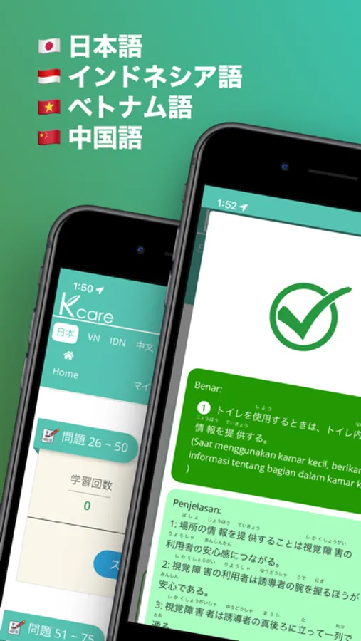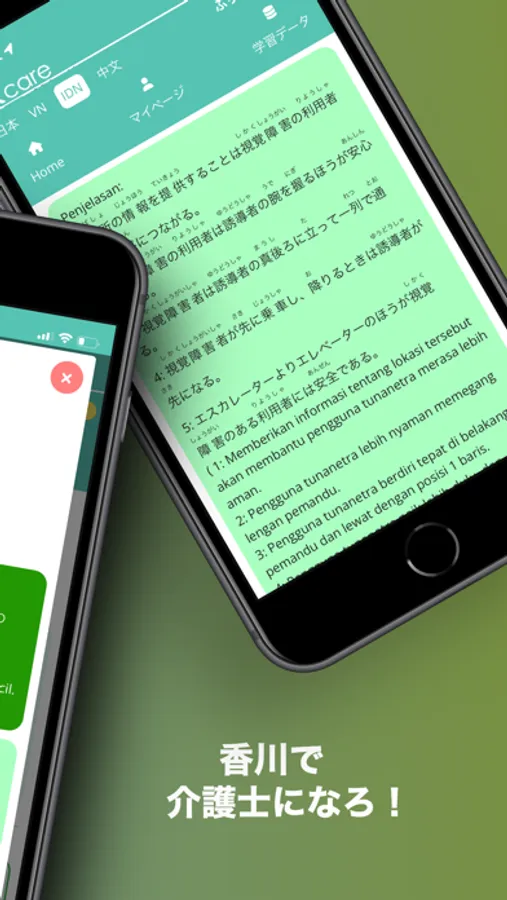 超高齢化社会が進行する日本では、介護のニーズは今後さらに高くなります。介護業界は慢性的な人材不足で、介護職は求人がとても多く、これからも求人が増え続けます。しかも、介護福祉士の資格保有者はとても価値があり、介護業界から引っ張りだこです。そんな外国人たちが日本で介護従事者として働くことを支援したくて、このアプリを開発しました。