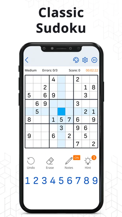 • Classic Sodoku free with 9x9 grid