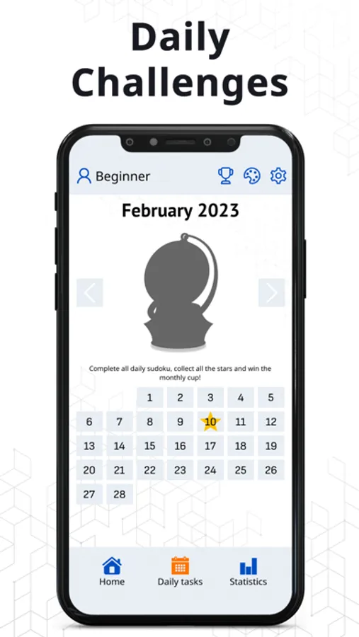 • Daily Sudoku games - win daily challenges and collect trophies