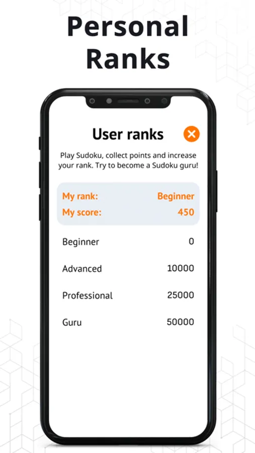 • 4 playing levels from Beginner to Guru: choose easy or advanced level to exercise your brain