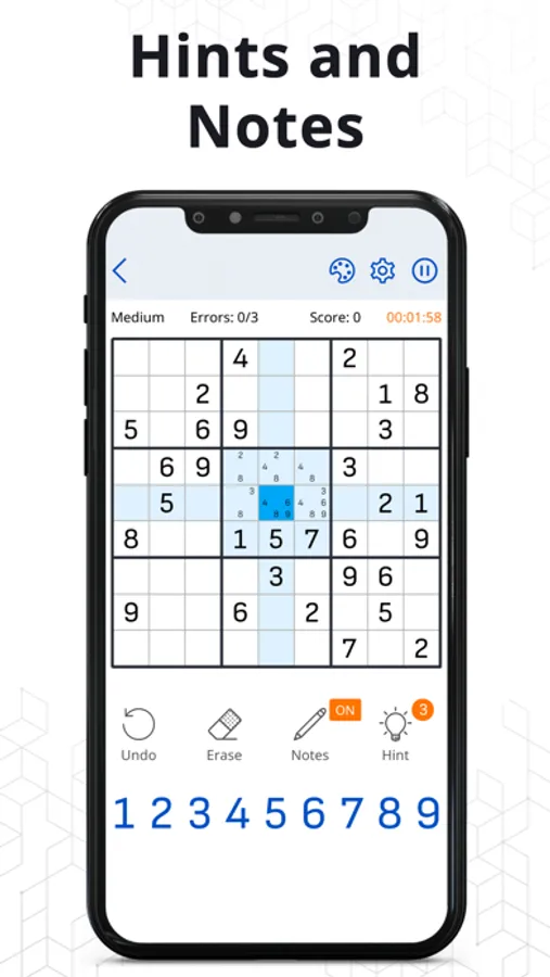 Not repeating numbers is the most basic rule of good Sudoku. Each Sudoku puzzle will have one unique solution. Our app has an intuitive interface, easy control and well-balanced difficulty levels for both beginners and advanced players. When you open our number logic game for adults for the first time, you will see a learning tutorial that will teach you how to play, and after solving hundreds of Sudoku crossword puzzles, you will become a Sudoku Guru.