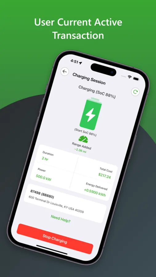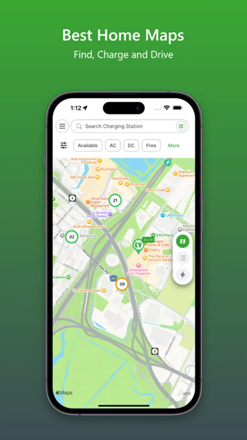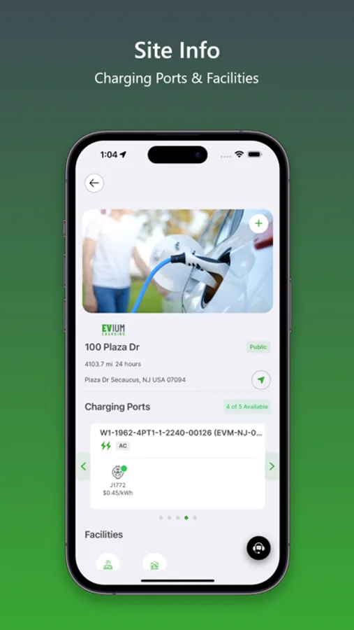 - Details Site Info Screen: You can view detailed information about charging stations, including location, Availability, Amenities, Pricing, Opening times and more.