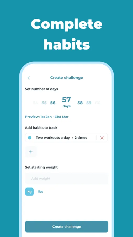 Reach new heights of mental discipline and physical strength. 75 Habit allows you to create a list of habits and follow them through for 75 days (or as long as you want!)