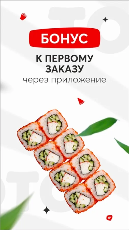К первому заказу от 699 ₽ дарим ролл «Калифорния» (обычная цена 289 ₽) абсолютно бесплатно! Промокод: 6060
