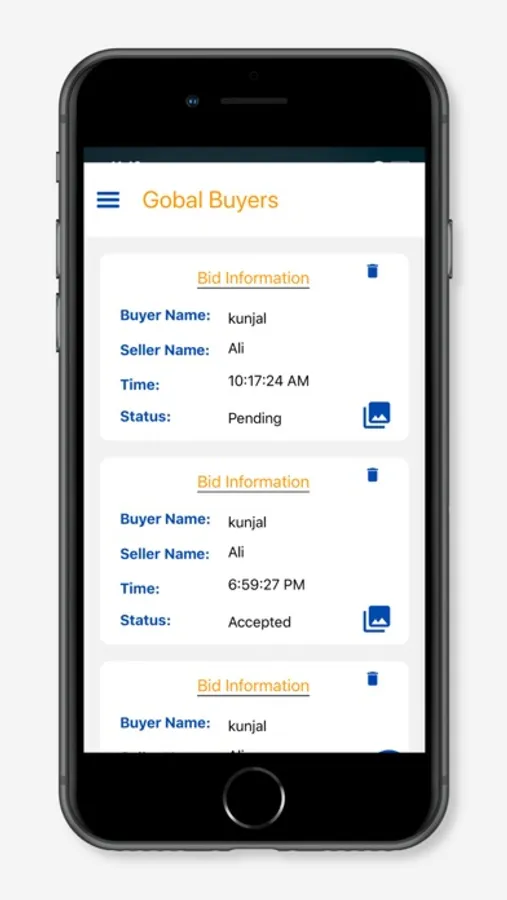 buyer is a create a bid, view a requirements, completed orders and latest price.