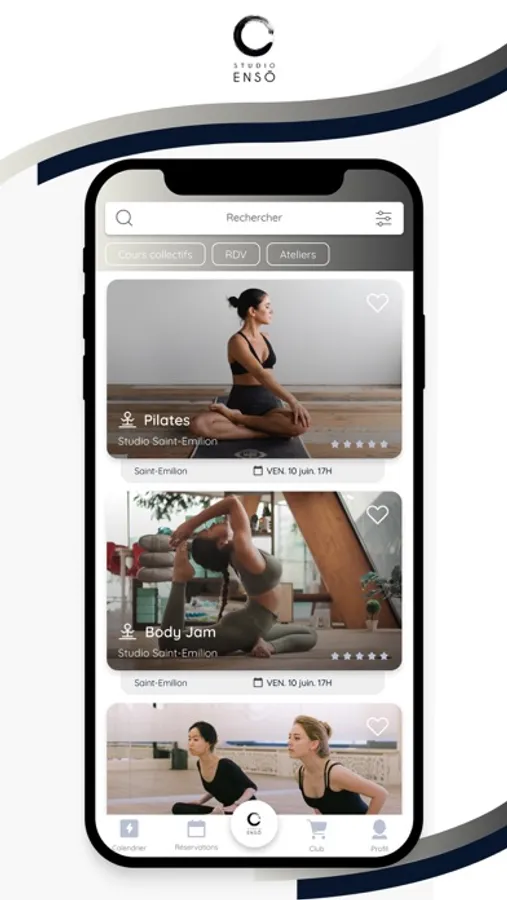 L'application Studio Ensō est là pour compléter votre parcours personnel de remise en forme (et elle est gratuite pour tous les membres) ! Trouvez tout ce dont vous avez besoin dans une seule application ; réservez vos cours, gérez votre abonnement et connectez-vous avec vos professeurs.