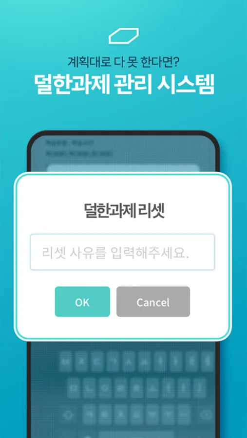 덜한과제관리: 진도계획에서 하기로 한 목표학습양대비 덜한 학습양이 어느정도인지 관리하는 시스템입니다. 덜한 과제는 누적으로 계속 추가됩니다. 덜한과제가 많다면 진도계획을 수정할때 과제양을 줄여야 하고, 덜한과제가 없다면 진도계획을 수정할때 과제양을 늘려야 합니다. 결국 학생이 현재 학습하는 문제집의 과제양의 정도가 적당한지를 판단하는 기준이 됩니다. 덜한과제수를 없애는 방법은 진도계획된 학습이외에 추가학습을 진행한다면 덜한과제수가 줄어 듭니다. 일일계획표에서 주어진 학습범위보다 더 많이 하면 됩니다. 만약 덜한 과제양이 너무 많아서 덜한 과제관리가 무의미하다고 생각이 되면 리셋후 덜한과제를 0 으로 처리한다음 처음부터 다시 덜한과제관리가 가능합니다.
