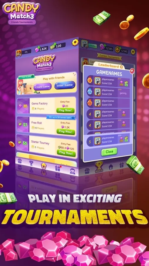 -Join different tournaments with a variety of match modes. The higher you rank, the bigger your prize! You can practice for free with Tickets, then win REAL CASH and other extravagant prizes playing Cash Games!