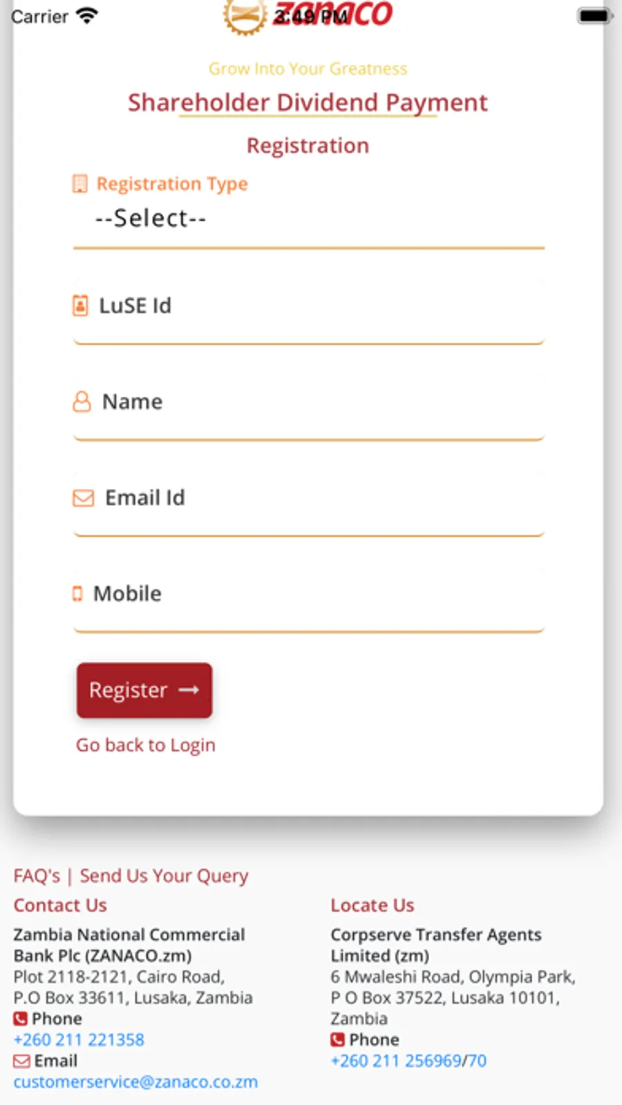 Introducing a new Mobile App designed specifically for Zanaco Shareholders, providing convenient and efficient access to vital information about their shareholding and paid dividends. This powerful app is poised to revolutionize the way shareholders interact with their investments, fostering improved turnaround times on complaints, providing a reliable communication channel, and assisting with updating of KYC information.