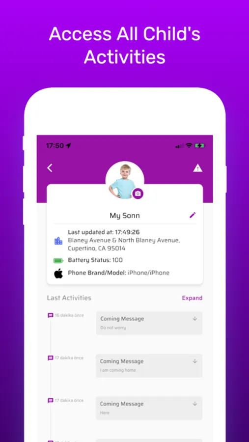 Battery check — The app sends you a notification when your child's battery charge is low, so you can tell them to charge;