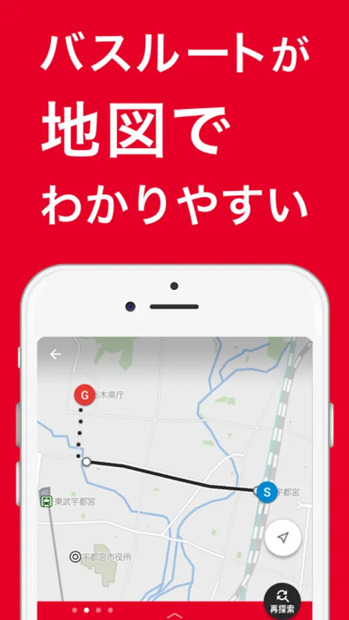 ・最寄りバス停や目的地までの徒歩ルートを表示できます。