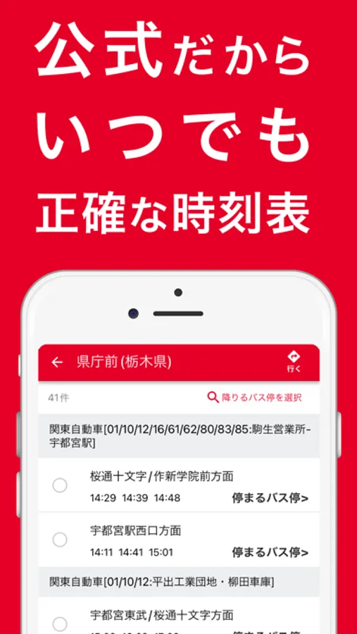 関東自動車でのバス移動をもっと便利で快適にわかりやすく。時刻表や乗換案内、接近情報や運行情報など、様々な情報を一度に見ることができるアプリです。