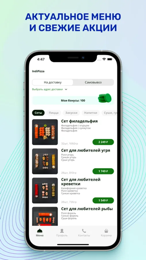 Мобильное приложение IndiPizza — это новый удобный способ заказать еду из любимого кафе. Попробовать наши пиццу, роллы или суши стало как никогда просто! В приложении для Вас доступны быстрый и удобный заказ еды, выгодная для Вас бонусная программа, всегда актуальное и красочное меню, аппетитные фото, акции и свежие новости, обратная связь и наши контакты!