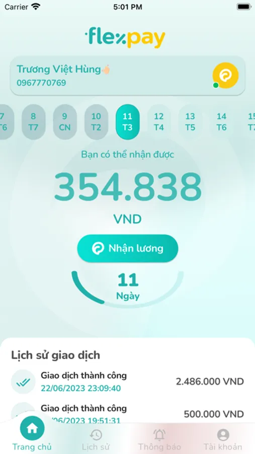 - Đăng ký sử dụng tính năng Ứng dụng lương tại Đối tác thông qua Ứng dụng Flex-pay: Xem thông tin ứng dụng lương; khởi tạo yêu cầu tiền lương; xem lịch sử lương;