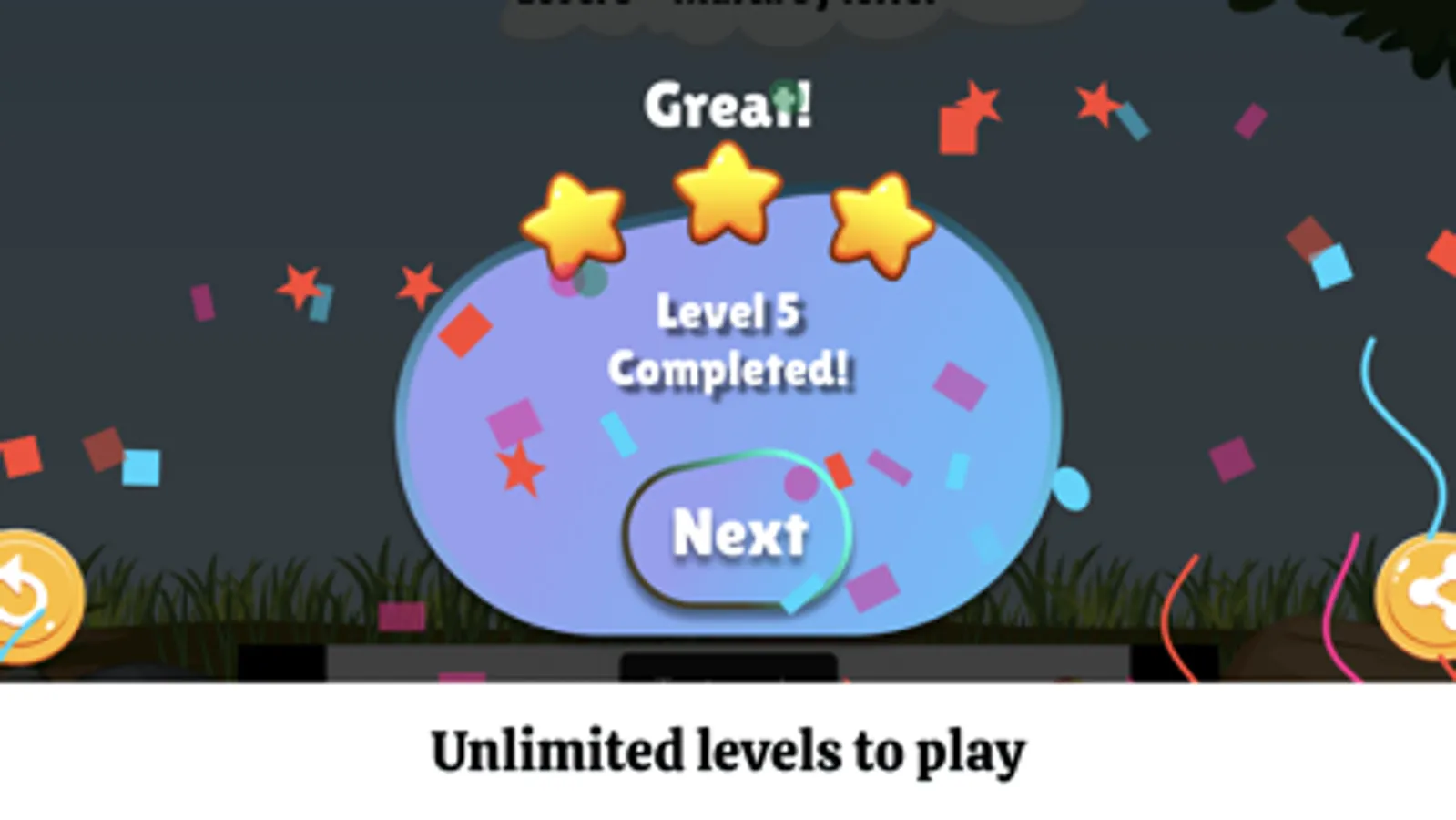 Match and Learn game features a number of levels that teach while your children play and learn.