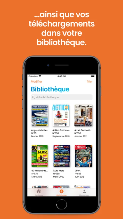Tous vos abonnements magazines et journaux achetés sur le site internet et disposant d’une version numérique offerte ou comprise dans l’offre sont consultables depuis l’application MyViapresse.