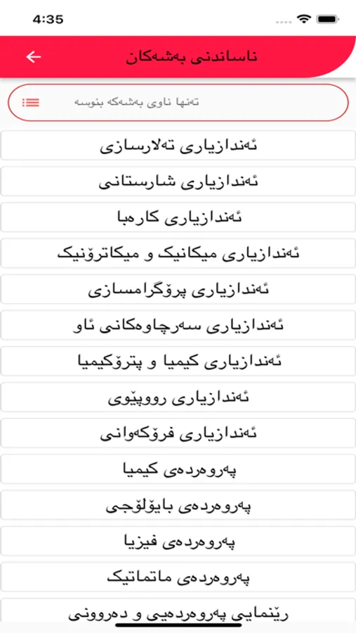 ٣- ناساندنی سەرجەم بەشەکان : لەم بەشە سەرجەم بەشەکانی زانکۆ و پەیمانگاکانی تێدایە کە خوێندنی چۆنە و داهات و کارکردن لەم بەشەدا دوای تەواکردنی چۆنە