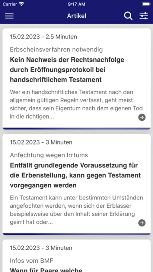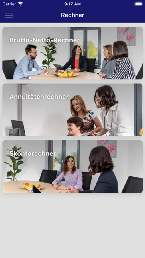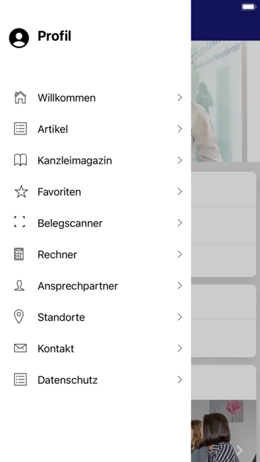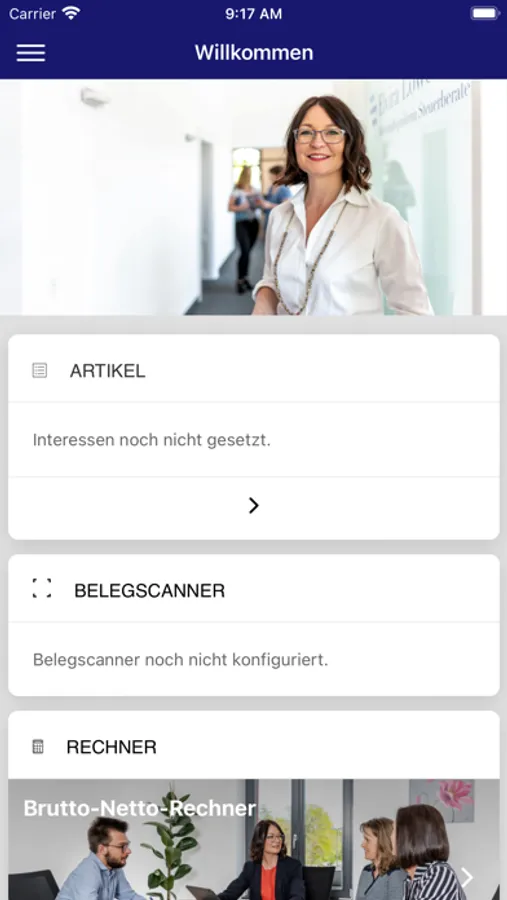 Mit dieser App möchte ich Ihnen die aktuellen Informationen und Änderungen in den Bereichen Steuern, Recht und Wirtschaft an die Hand geben. Darüber hinaus haben wir hilfreiche Tools für Ihren Alltag eingebaut, beispielweise unseren Brutto-Netto-Rechner oder den Skontorechner. Nutzen Sie auch die hinterlegte Liste unserer Ansprechpartner, um schnell und unkompliziert Kontakt zu uns aufzunehmen. Mit unserem neuen Kanzleimagazin „Fokussiert“ halten wir Sie auch von unterwegs aus auf dem Laufenden.