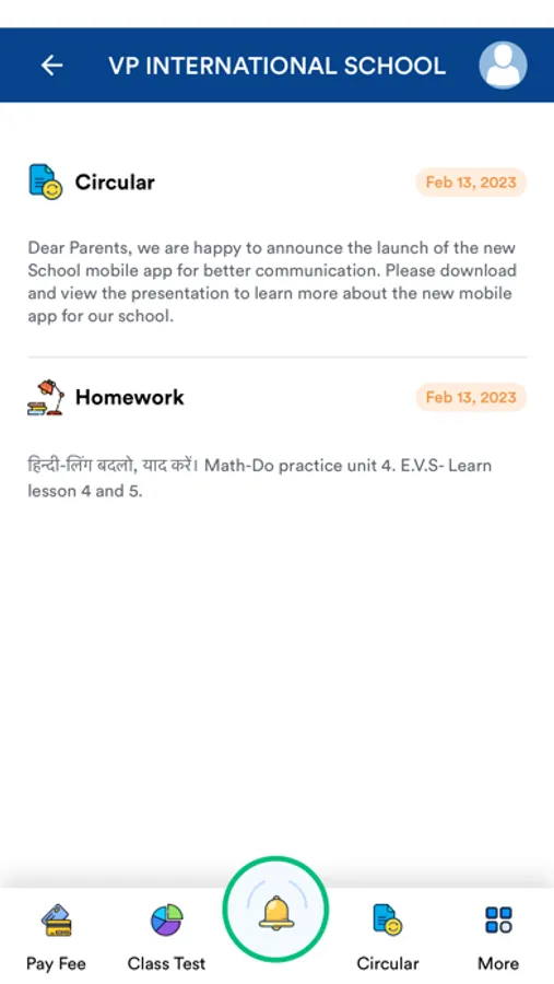 Our mobile application for parents & teachers VP International School,Karnal App – enhances parent involvement through simplified communication and transactions to make the job of the teacher and school easier. They can now send communication in a paperless manner, and assign homework directly from the board in the classroom.