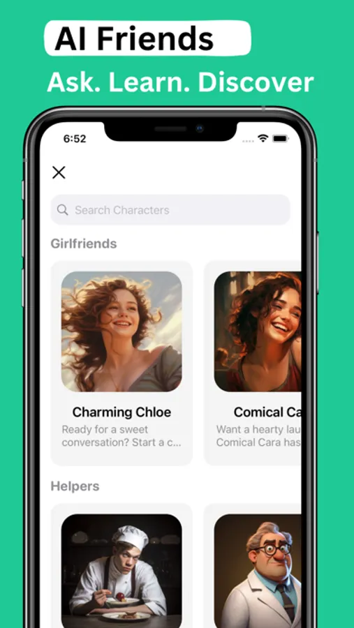 • Participate in realistic AI role-plays, unraveling multifaceted aspects of various categories including memes, helpers, love interests, and literary figures.