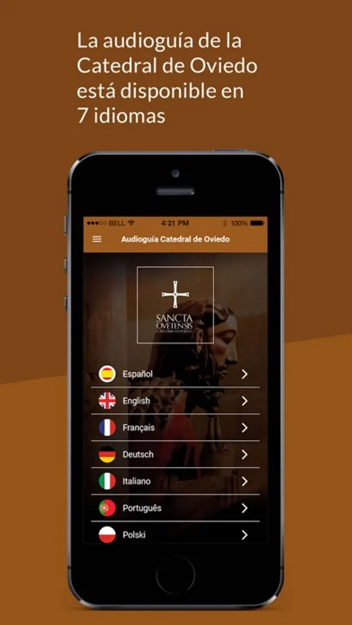 Cuanta con audios en 7 idiomas, español, inglés, francés, alemán, italiano, portugués y polaco, de los puntos más importantes de la Catedral de Oviedo.