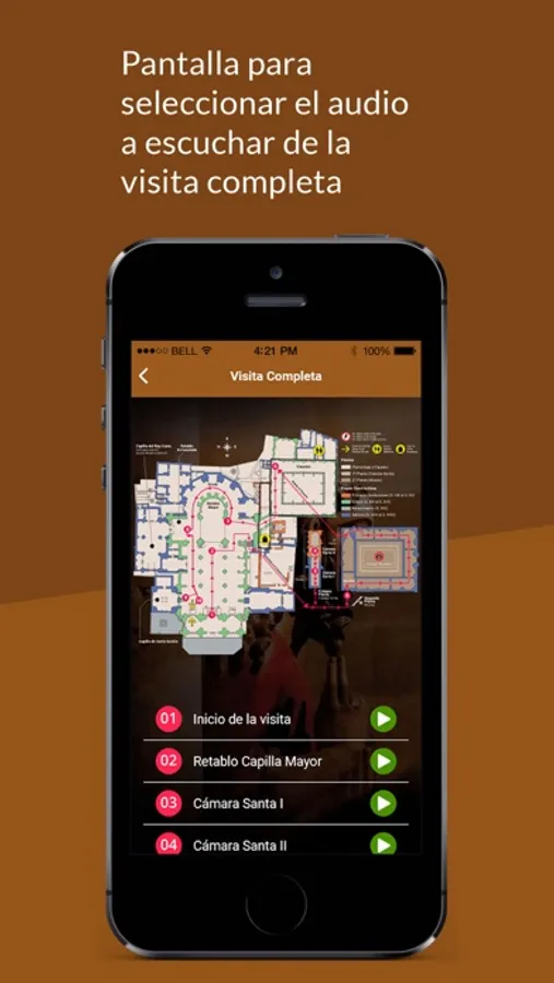 - En cada punto de la visita por la Catedral de Oviedo hay un número, selecciona el número en el listado de la audioguía para oír las explicaciones y ver las fotos correspondientes al punto de interés.