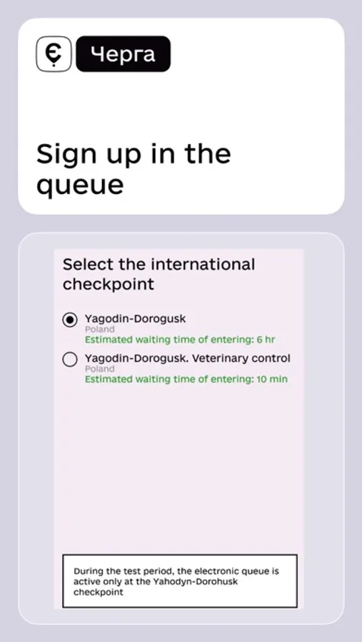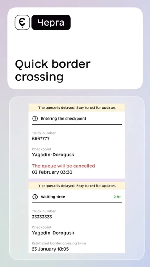 Electronic queue for passage without waiting at international checkpoints. Valid for international cargo carriers.