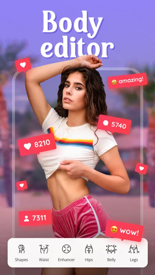 - Edit body: Shape your body perfectly with a simple slide of a slider
