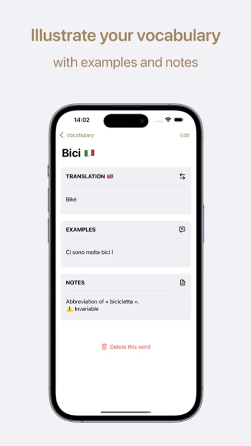 Leximio automatically detects the language you're typing in. And with the ability to add your own personal notes and examples, you can tailor your learning experience to suit your needs and preferences.