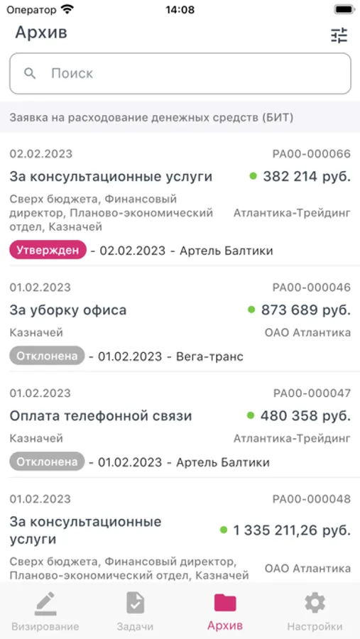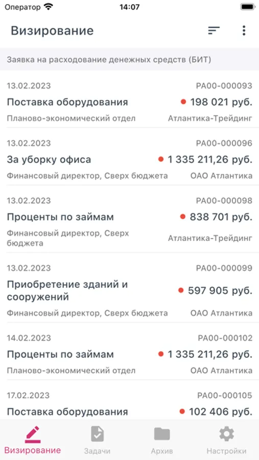 Приложение представляет собой облегченную версию обработки "Рабочее место визирования" в БИТ.ФИНАНС.