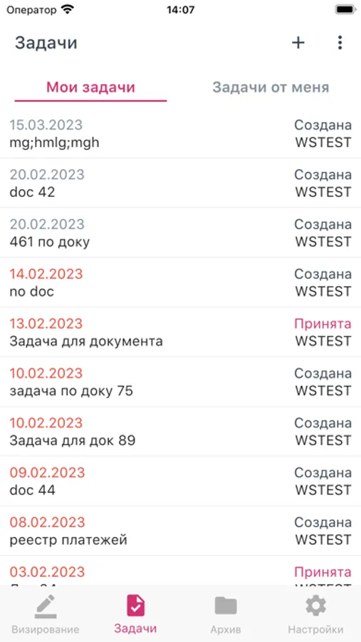 Также приложение позволяет управлять задачами, адресованными пользователю, и просматривать список отправленных задач