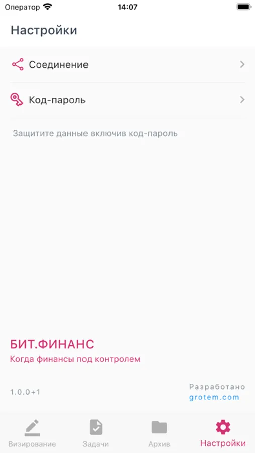 Приложение предназначено для визирования документов и управления задачами в системе «БИТ.ФИНАНС» редакции 3.1 и выше. По умолчанию приложение работает с базой БИТ.ФИНАНС, опубликованной на демо-сервере. Для работы приложения с Вашей информационной базой необходимо выполнить публикацию на веб-сервере и задать в мобильном приложении Ваши параметры подключения. Подробная информация о публикации информационной базы на веб-сервере содержится на ИТС http://its.1c.ru/db/v83doc#content:19:1.