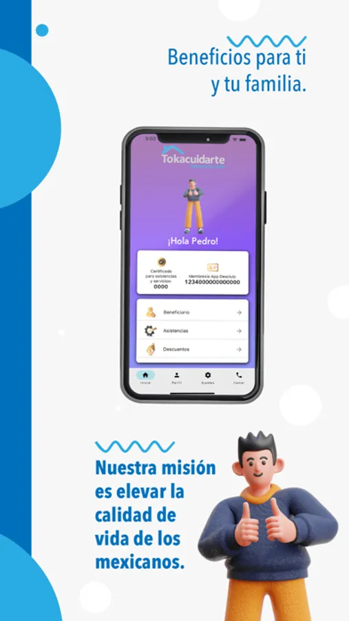 Descarga la APP TokaCuidarte, ingresa tus datos, y listo recibe tus folios digitales y conoce todos tus beneficios, desde la APP podrás ver detalladamente los mismos y solicitarlos con tan solo tocar el botón de solicitar.