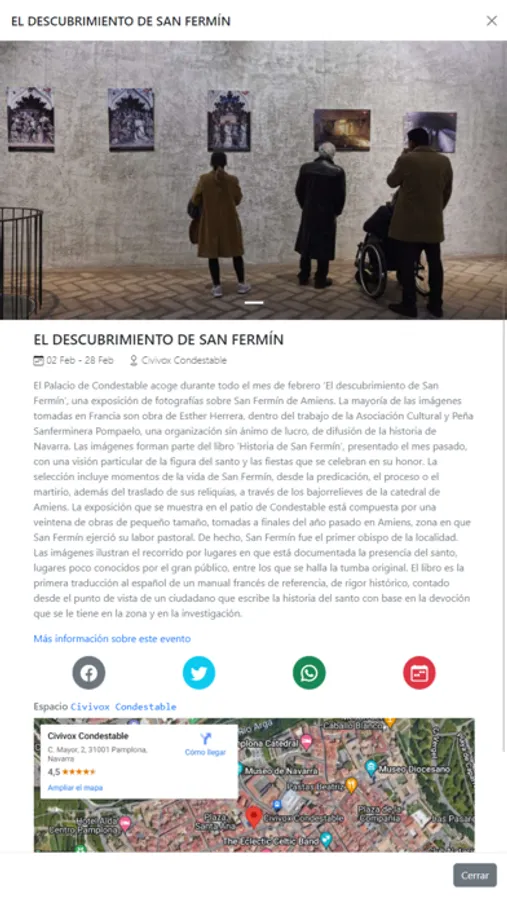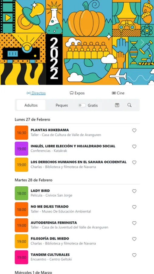 Agenda digital gratuita que recopila todos los eventos de Pamplona en una misma APP. Actualizada diariamente, con horarios, precios y dirección de todos los eventos. Actividades para todas las edades. Conoce todo lo que sucede en tu ciudad y los espacios que organizan actividades y eventos. ¿Te la vas a perder?