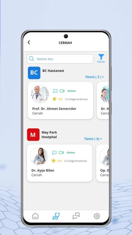 Tüm branşlardan doktorlarımız arasından seçim yapın. Doktorunuza sorularınızı sorun. Online olanlarla hemen şimdi canlı bir görüşme yaparak ya da ihtiyaç duyduğunuz sağlık profesyonelleri evinizden, iş yerinizden çıkmadan bulunduğunuz konumda gelsin.