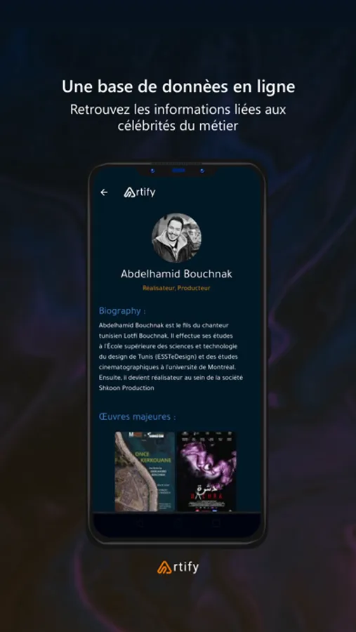 Artify est la première plateforme de streaming spécialisée dans le cinéma tunisien, opérant dans la légalité et le respect des droits d'auteur. La plateforme contient le plus grand catalogue de productions tunisiennes entre les nouveautés et les classiques à travers un large choix, disponibles en sous-titrages et en Haute-Définition.