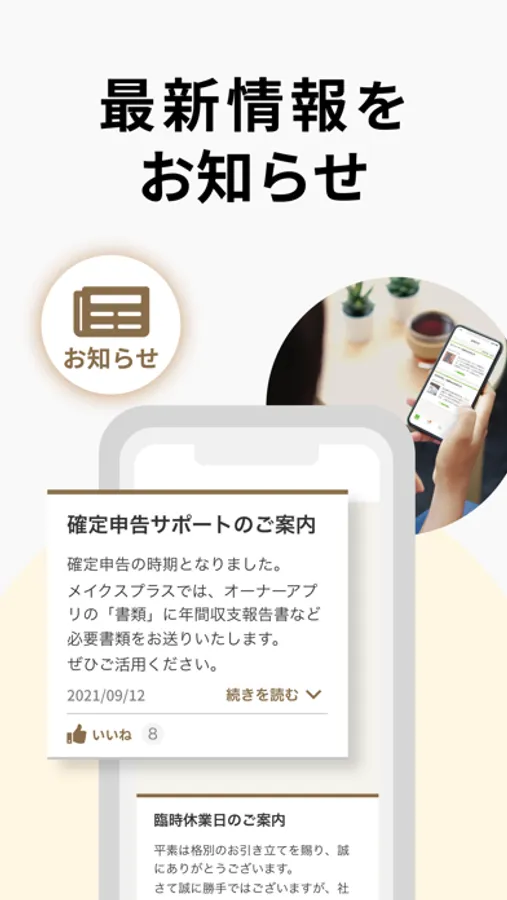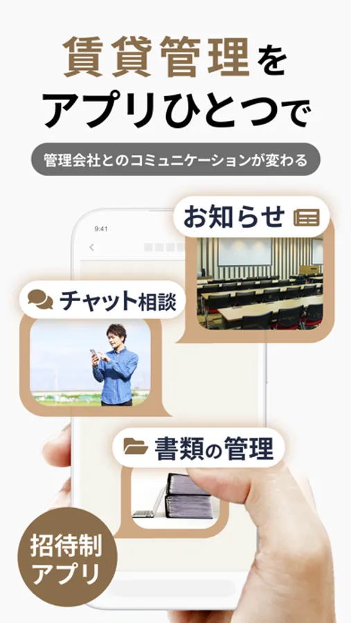 makes100年不動産アプリは株式会社メイクスプラスからの招待制でご利用いただけるアプリです。オーナー様と管理会社とのコミュニケーションを円滑にします。