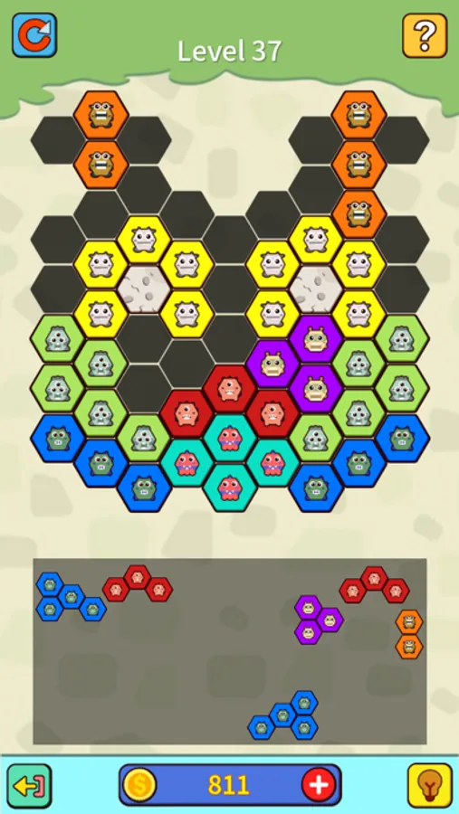 In this game, you have to drag and drop the hexagonal blocks at the bottom to fill up the big hexagonal grid at the top. Sounds easy, right? But be careful, you have to use all the blocks and fit them perfectly, or you will lose the game.